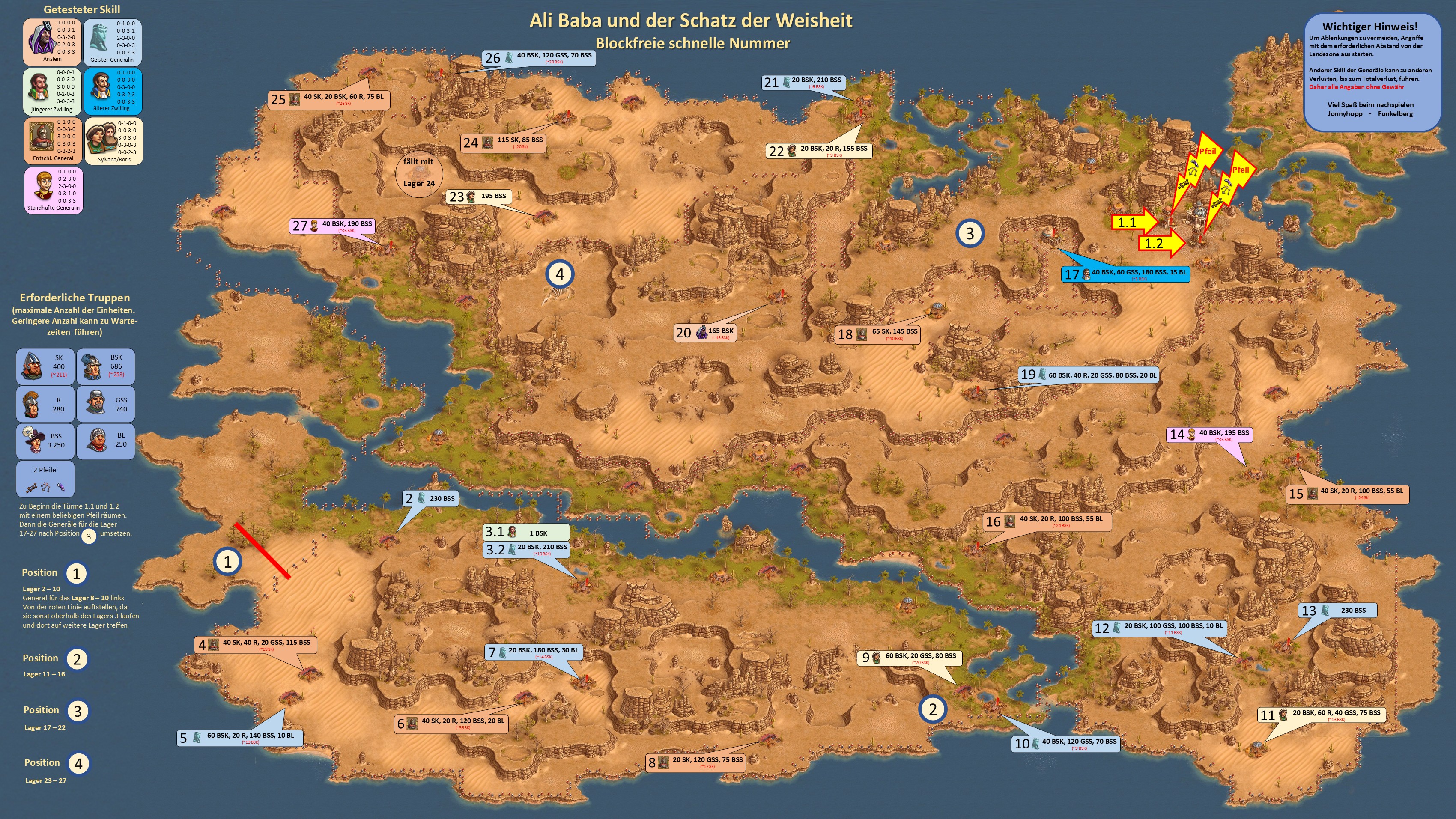 Bitte beachten, bei einer Vorwelle mit einem General geht immer ein Leben verloren, d.h. hat der General nicht den Skill "Extraleben" ist der General nur nach Verwendung eines Medizinkoffers wieder einsetzbar!