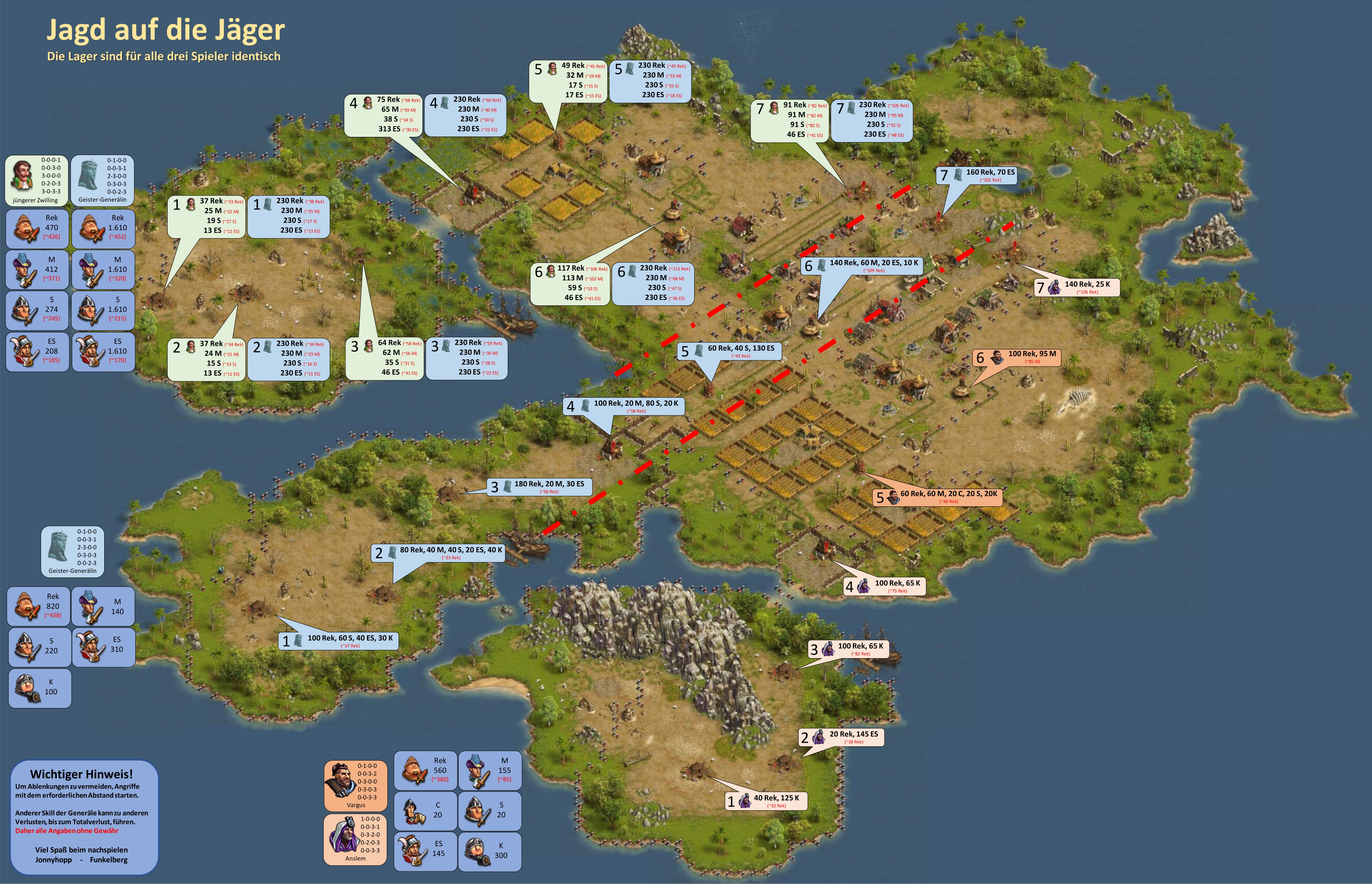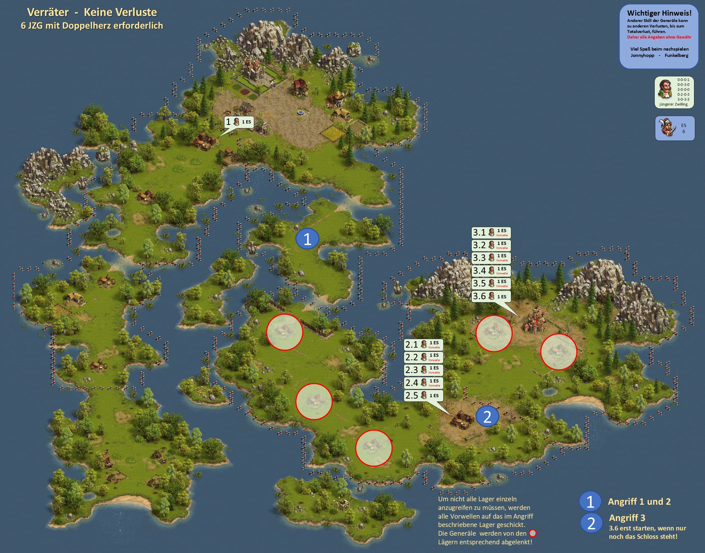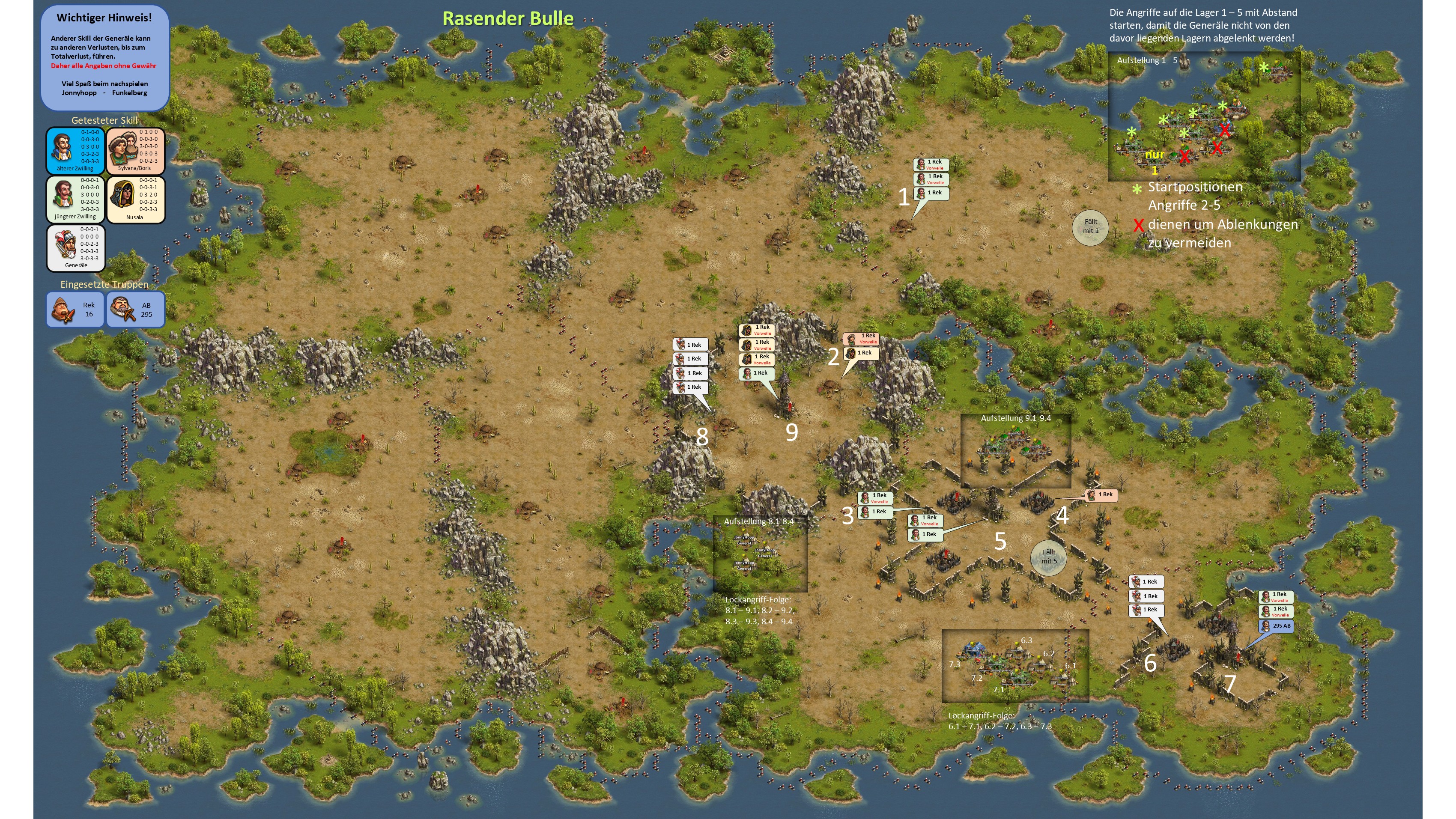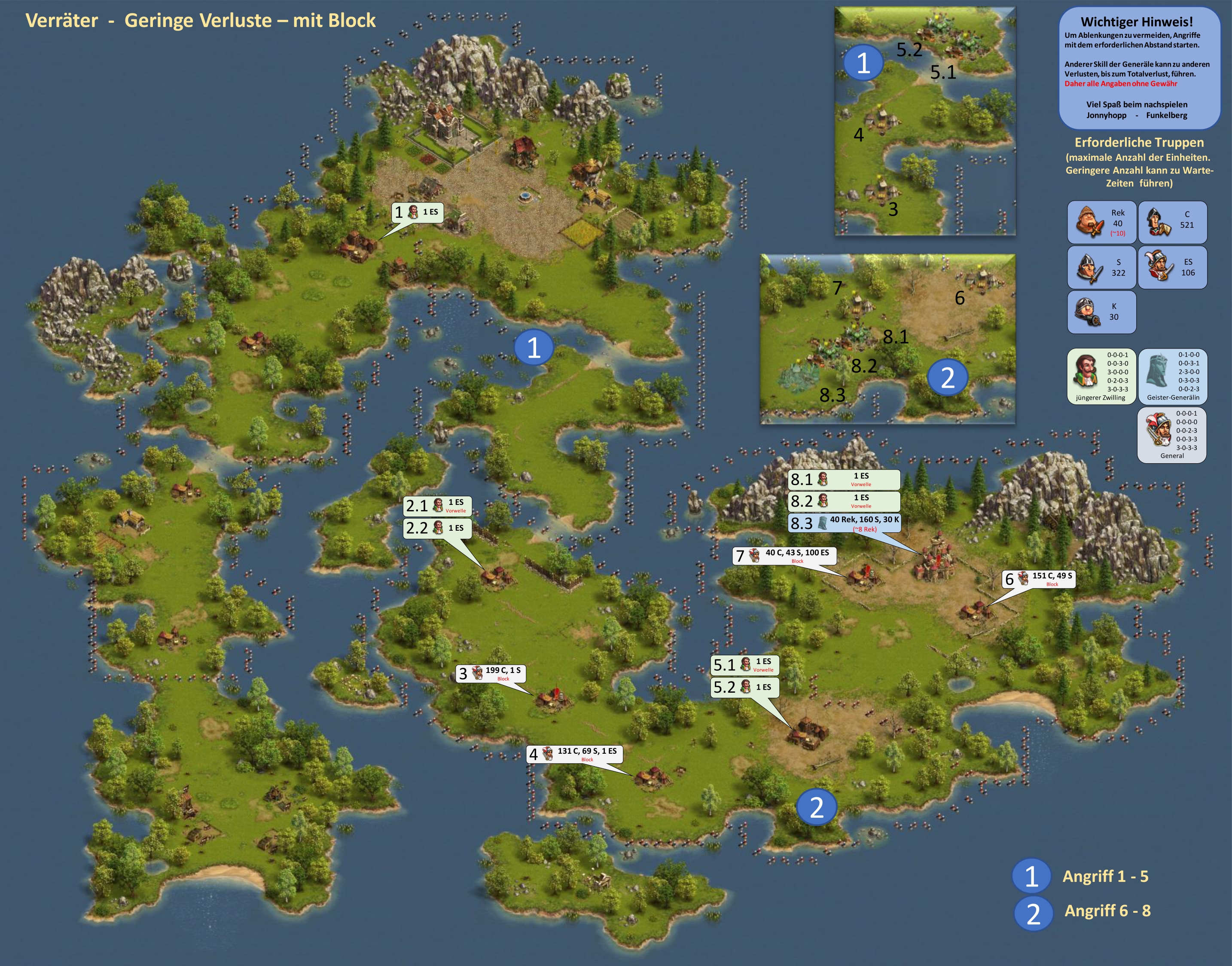 Bitte beachten, bei einer Vorwelle mit einem General geht immer ein Leben verloren, d.h. hat der General nicht den Skill "Extraleben" ist der General nur nach Verwendung eines Medizinkoffers wieder einsetzbar!