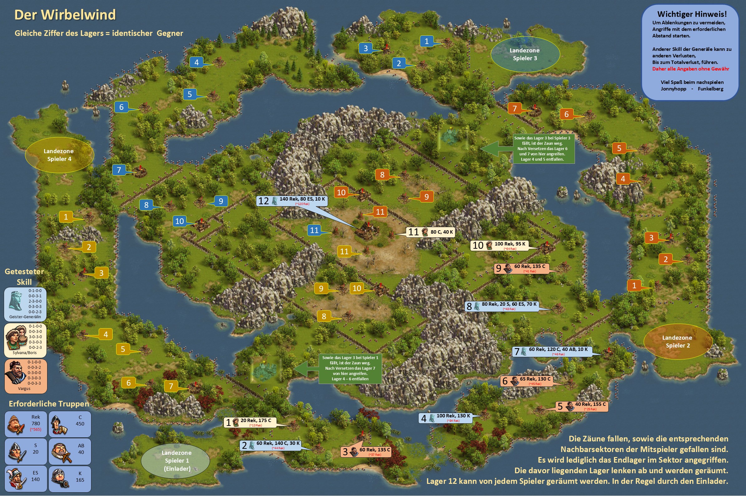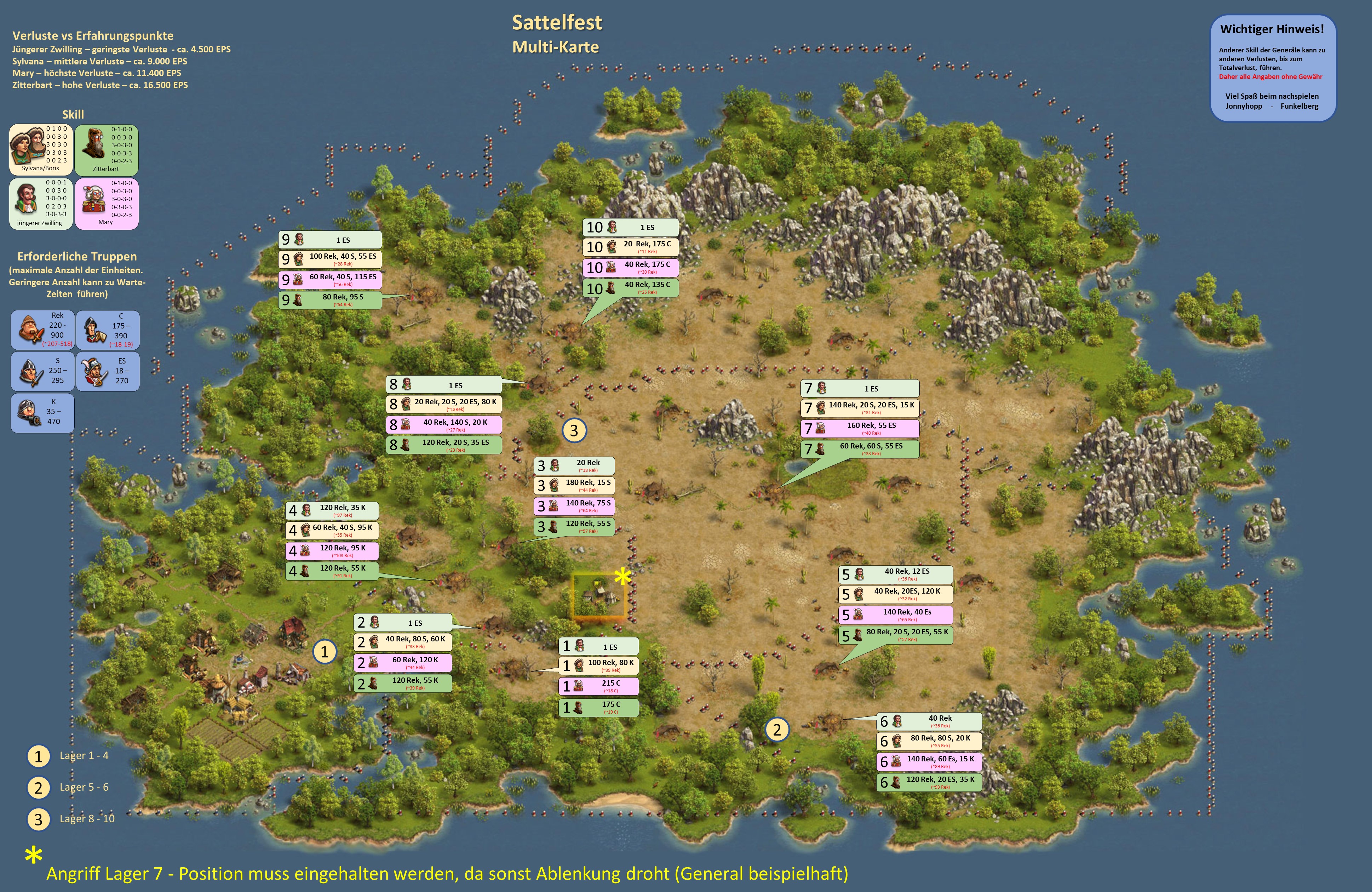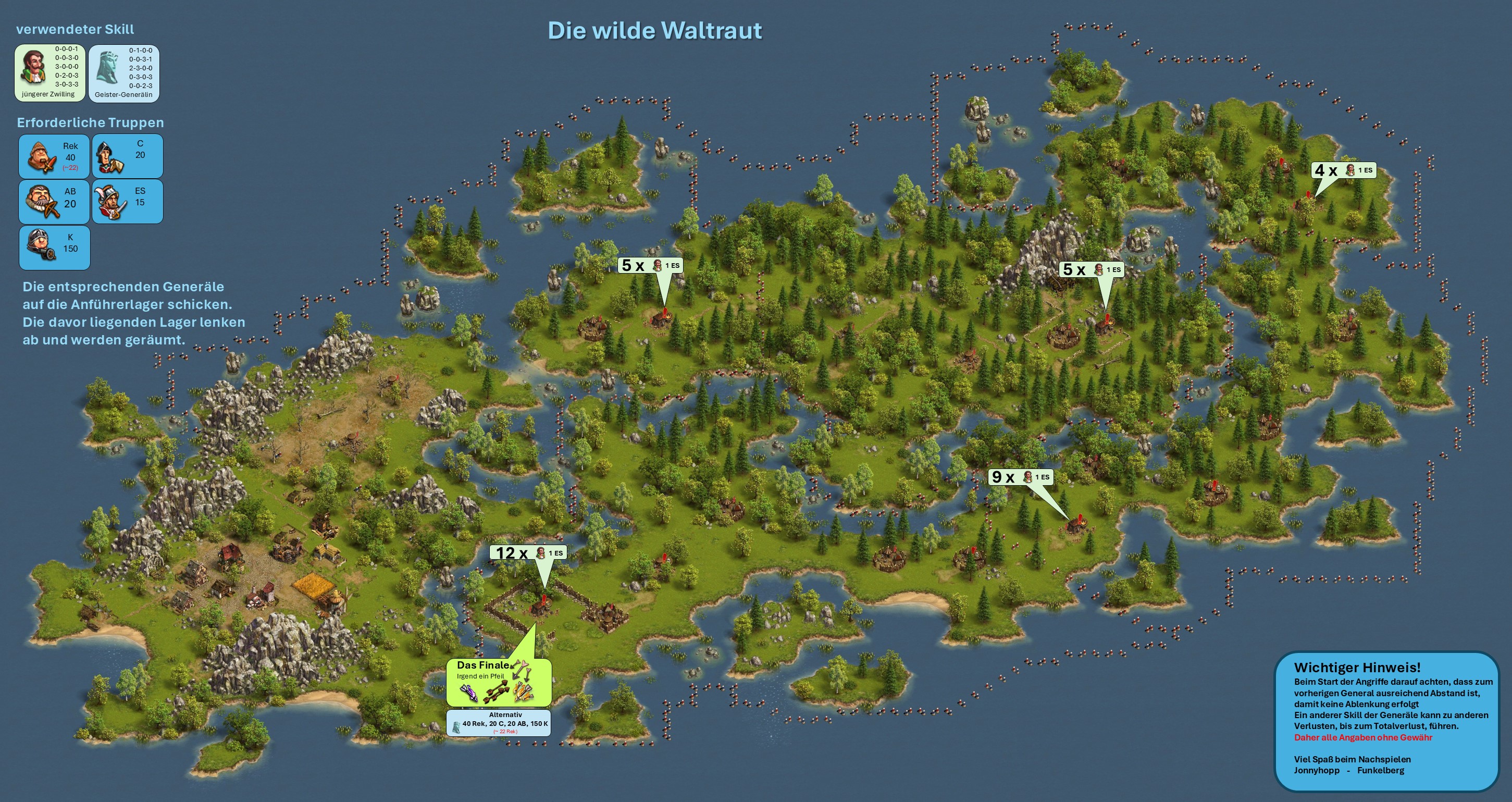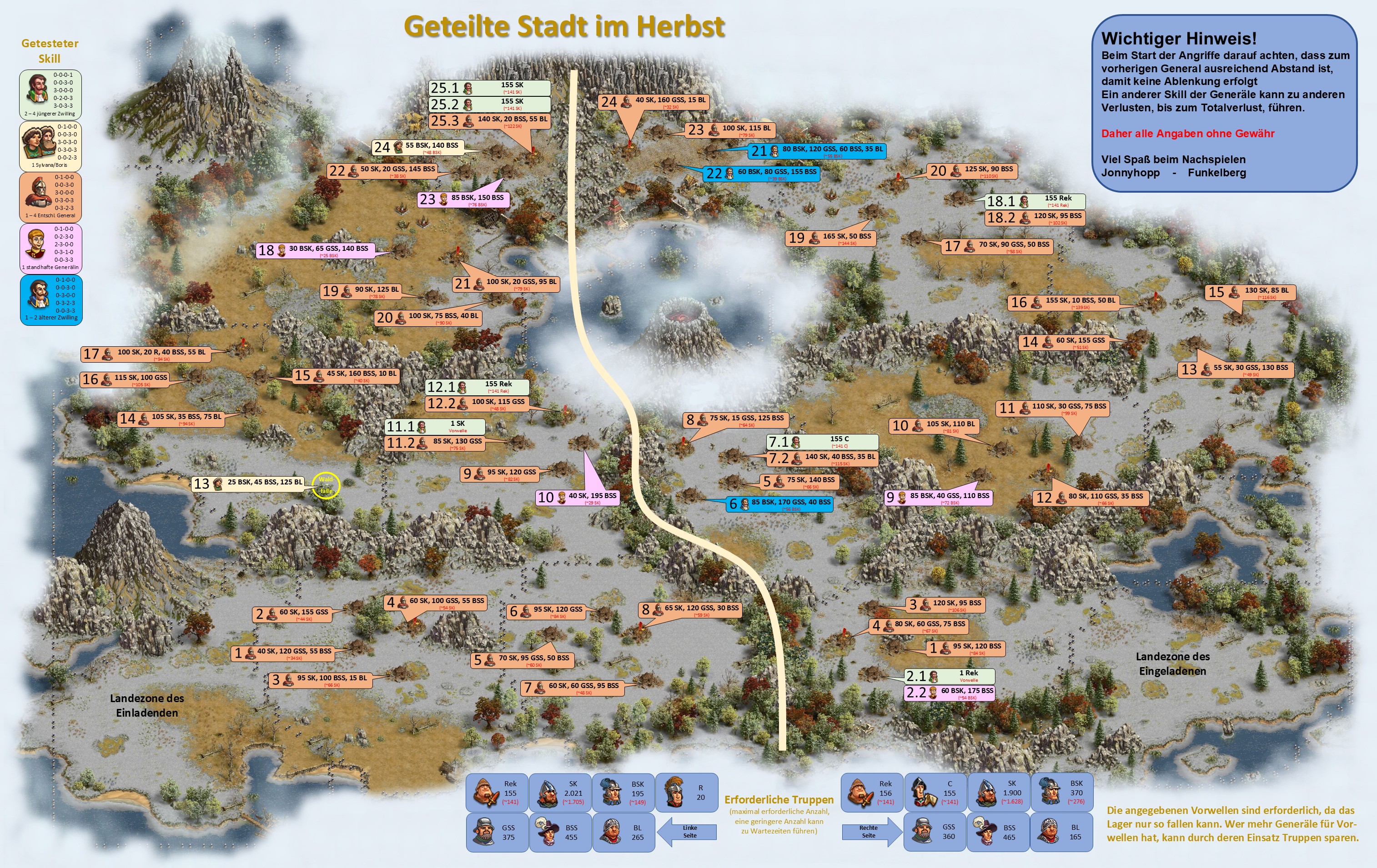 Bitte beachten, bei einer Vorwelle mit einem General geht immer ein Leben verloren, d.h. hat der General nicht den Skill "Extraleben" ist der General nur nach Verwendung eines Medizinkoffers wieder einsetzbar!