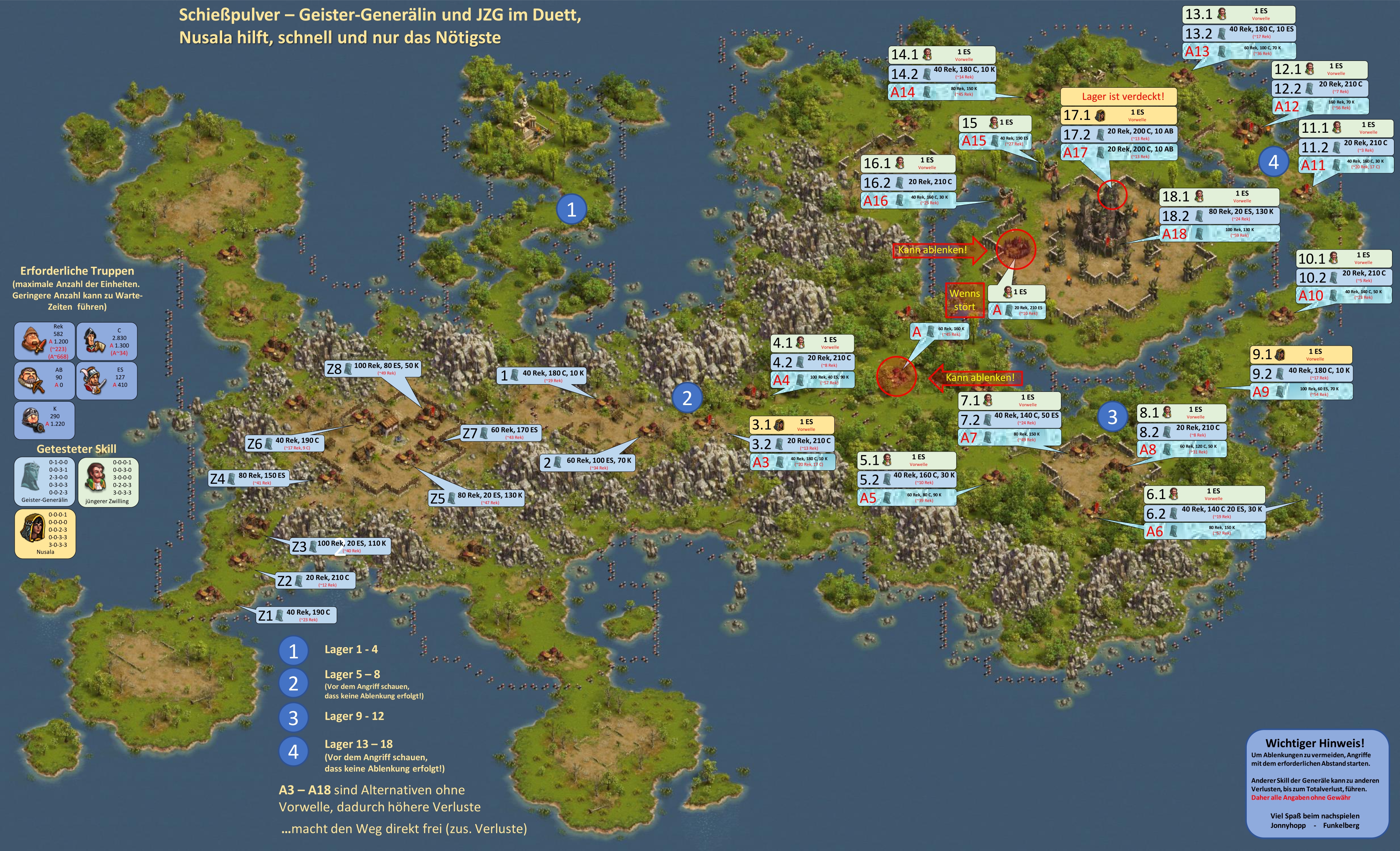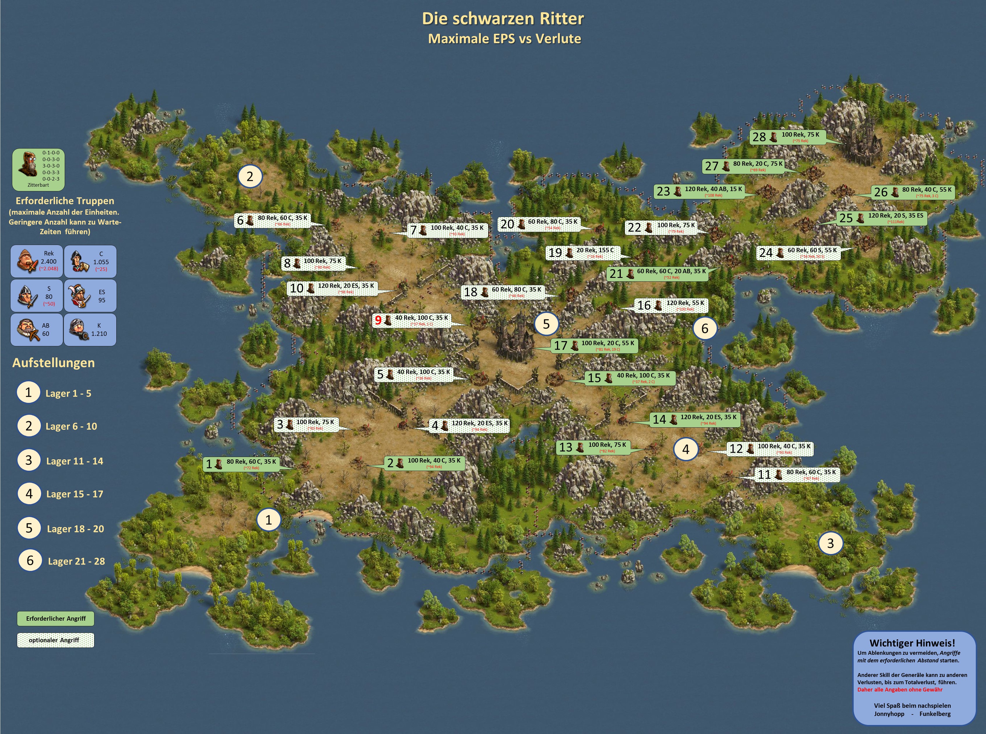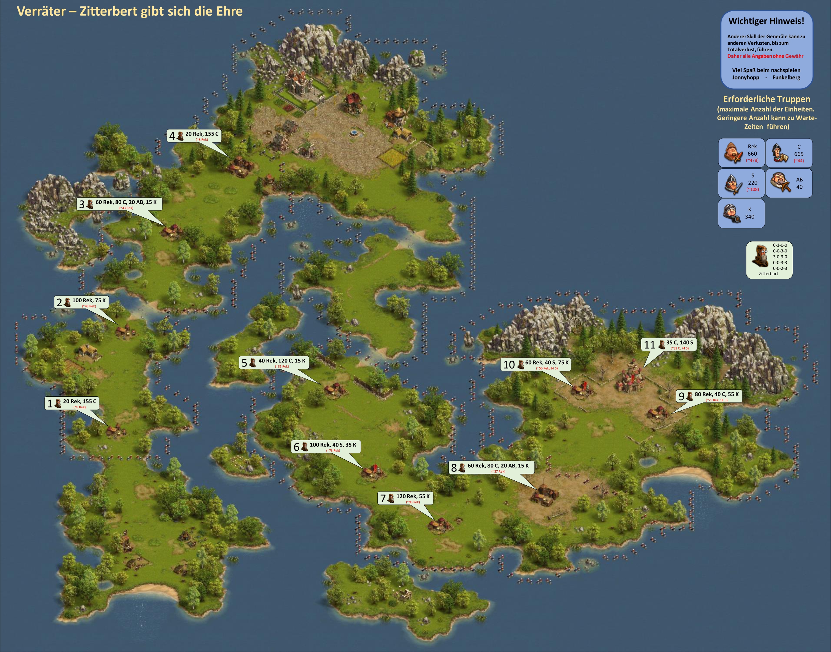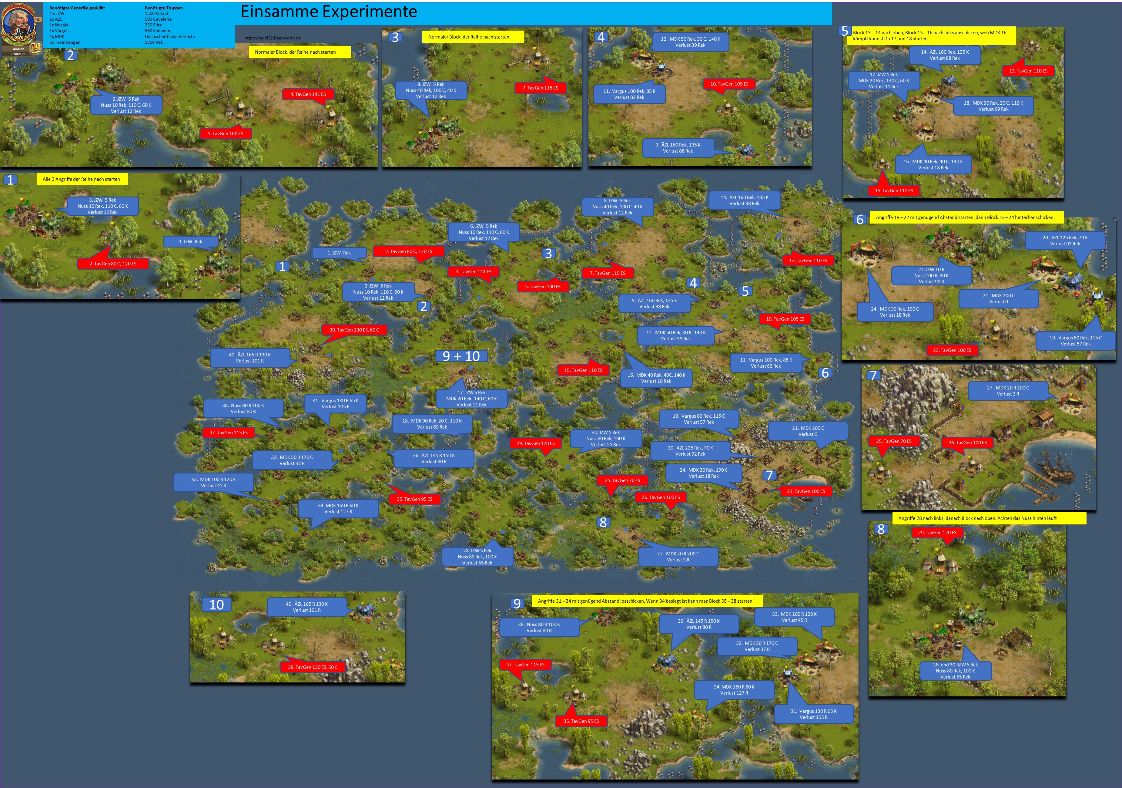 Bitte beachten, bei einer Vorwelle mit einem General geht immer ein Leben verloren, d.h. hat der General nicht den Skill "Extraleben" ist der General nur nach Verwendung eines Medizinkoffers wieder einsetzbar!