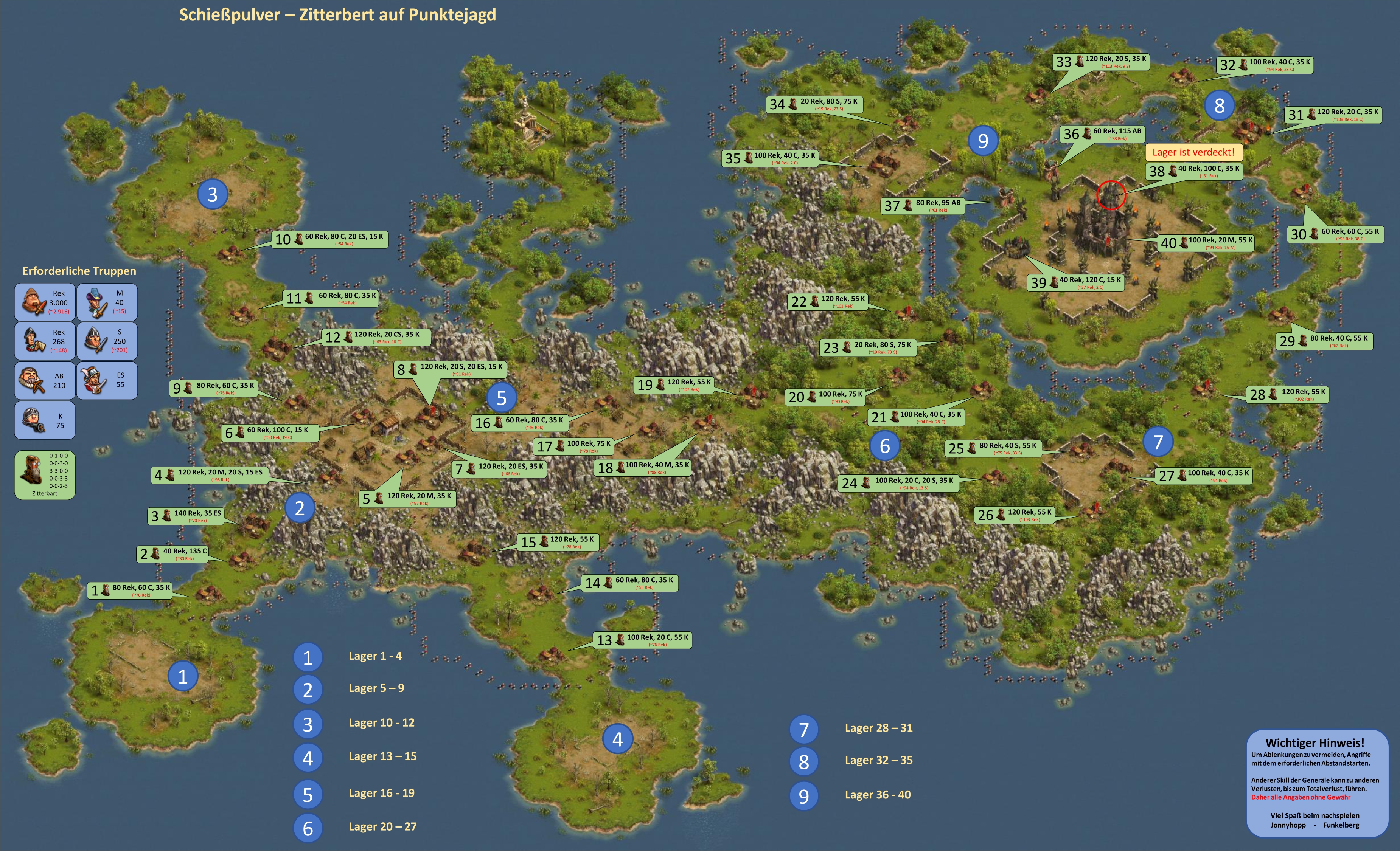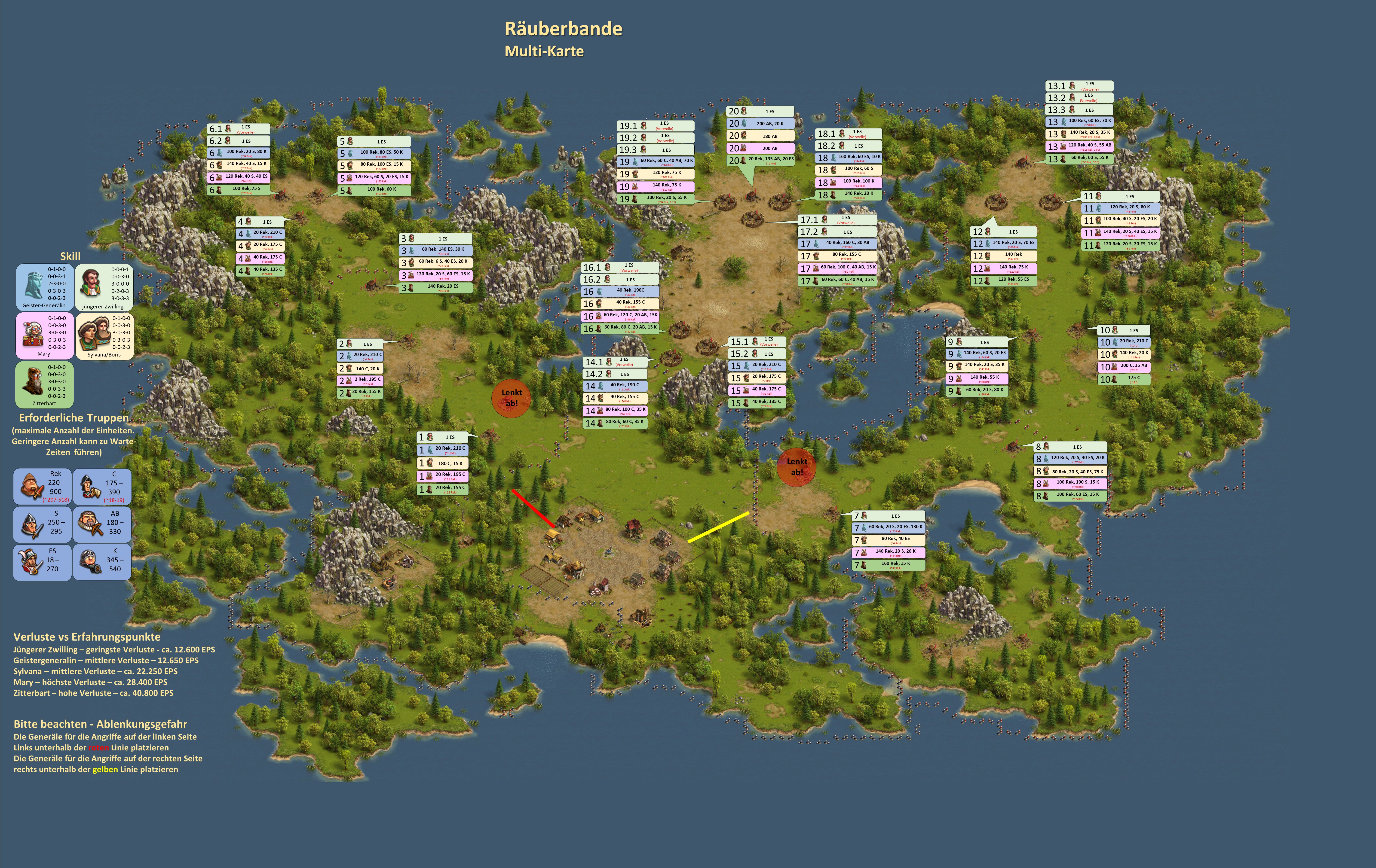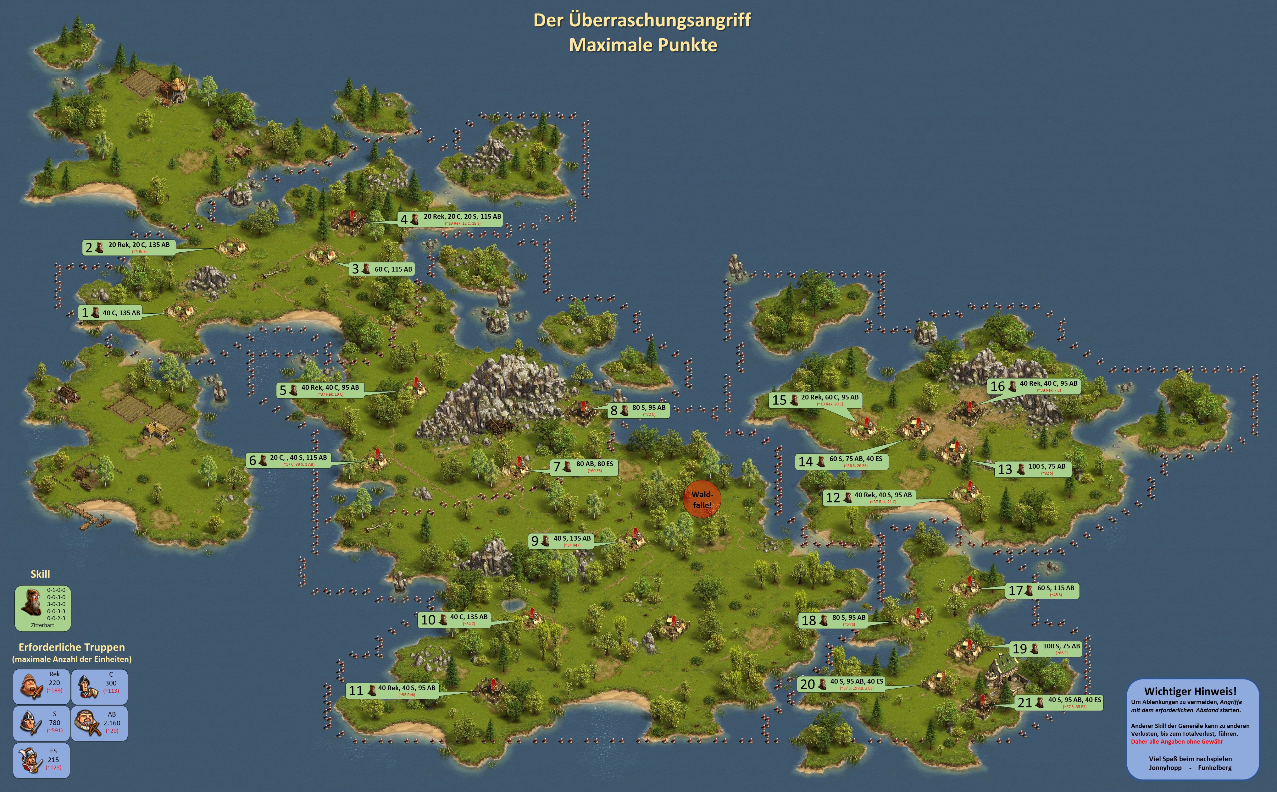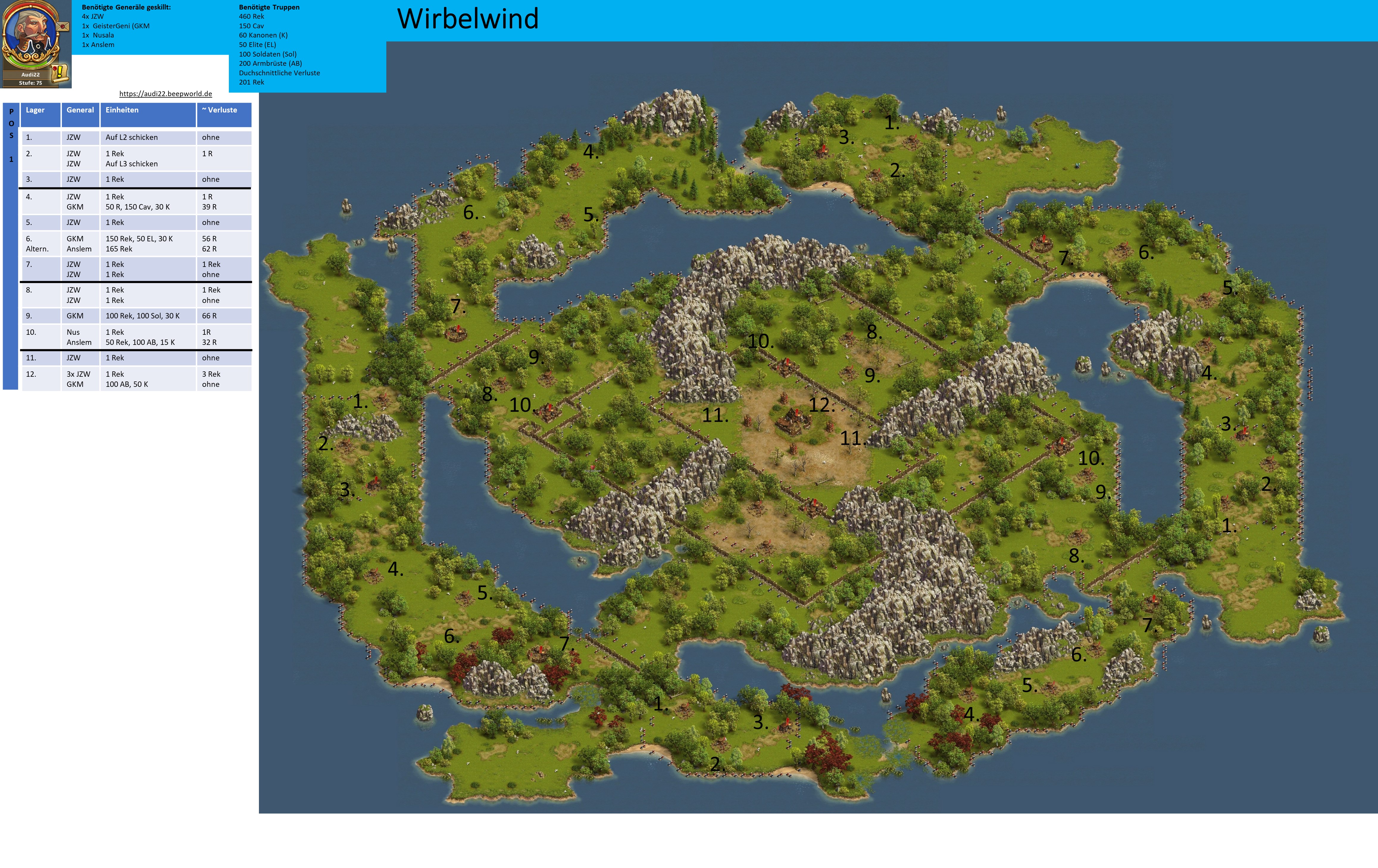 Bitte beachten, bei einer Vorwelle mit einem General geht immer ein Leben verloren, d.h. hat der General nicht den Skill "Extraleben" ist der General nur nach Verwendung eines Medizinkoffers wieder einsetzbar!