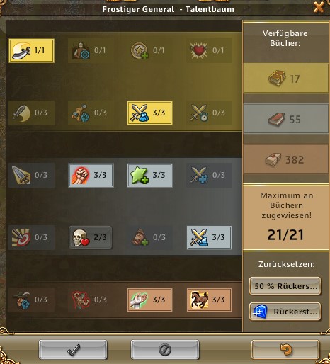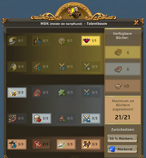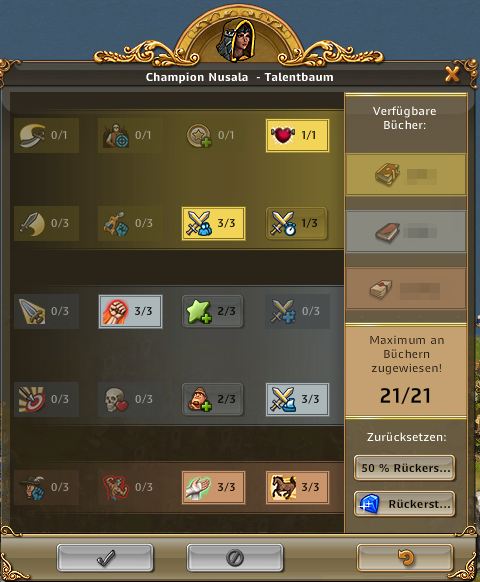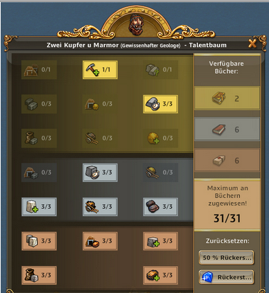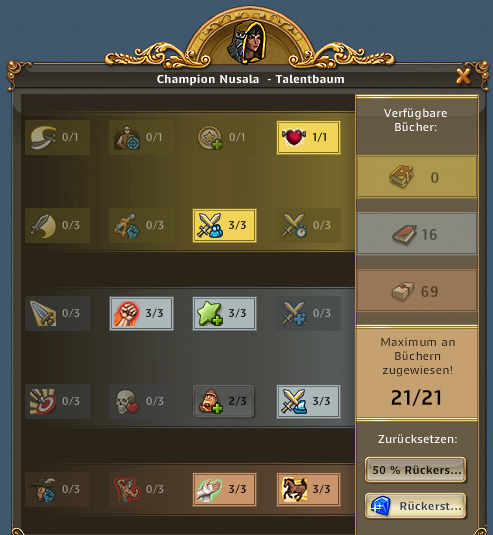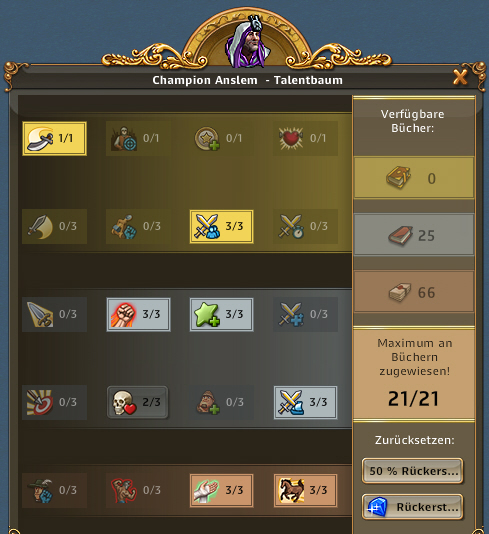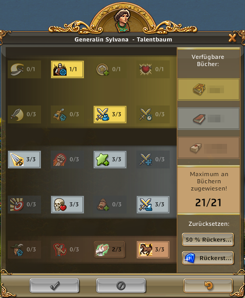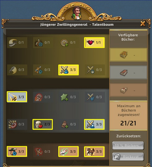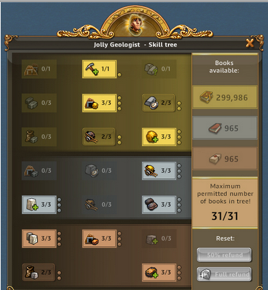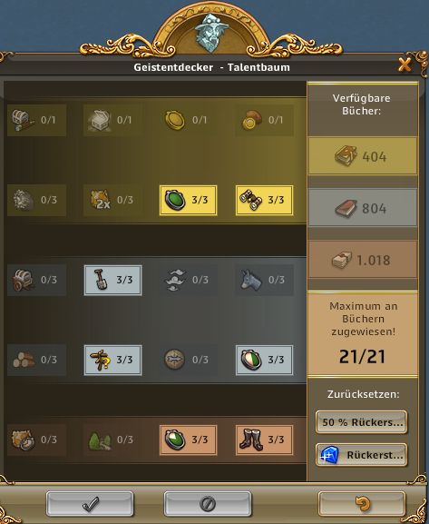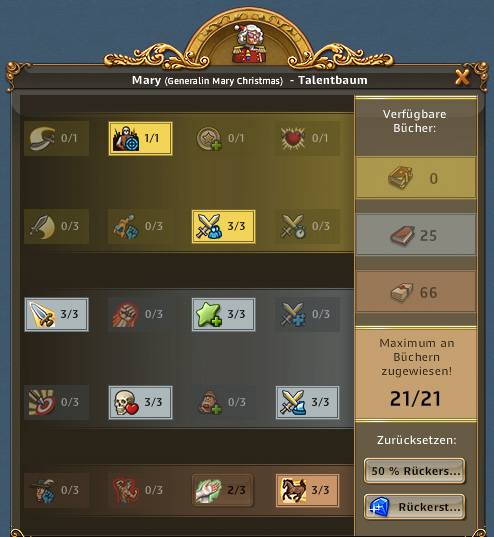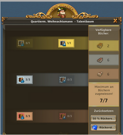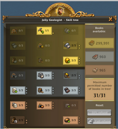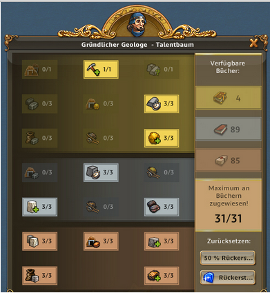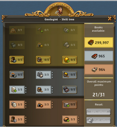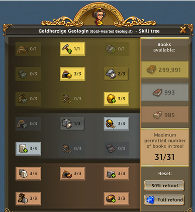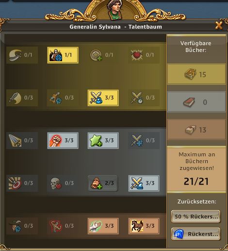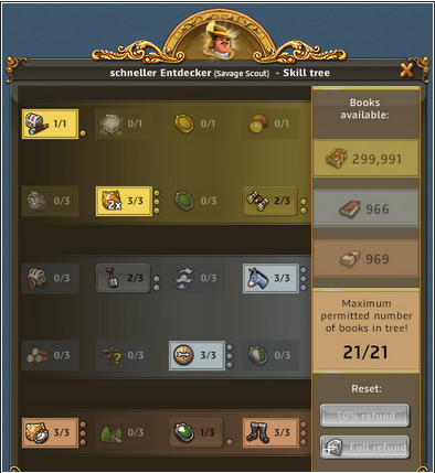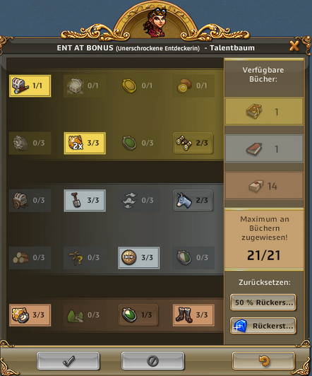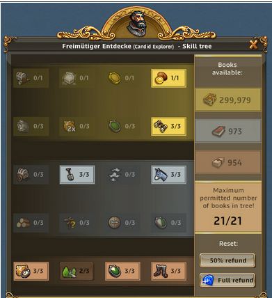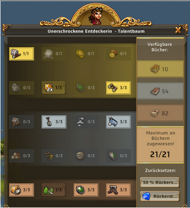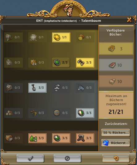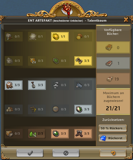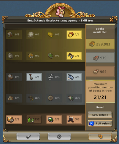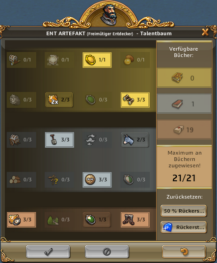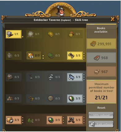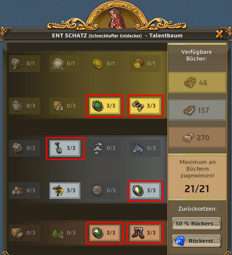 | ARTEFAKT / SCHATZSUCHE: Entzückende Entdeckerin, Abenteuerliche Entdeckerin bringt 50% bei Schatzsuchen mehr mit, Emphatische Entdecker bringt bei Artefakt IMMER 3 Förderungen bis zu 3x pro Tag | ARTEFAKT / AT-SUCHE: Die Skillung ist ideal um an Regenbogenschnee zu kommen, kann alternativ auch für die AT-Suche verwendet werden und ist auch super in Events. Eine ideale Allroundskillung auch für alle mit wenig Entdeckern.. |