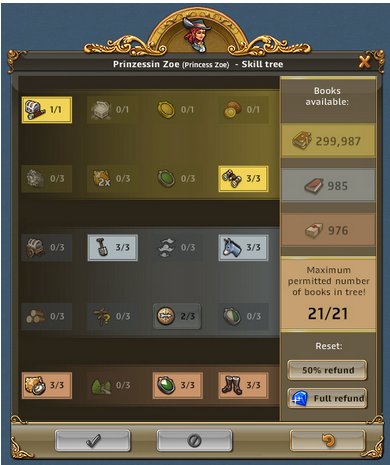 | Entdeckerin Prinzessin Zoe: günstig und effektiver Skill für beide Suchen: Abenteuersuche und Schatzsuche | Entzückende Entdeckerin: geskillt für Raritätensuche, desweiteren auch auf Schatzsuche und Abenteuersuche |